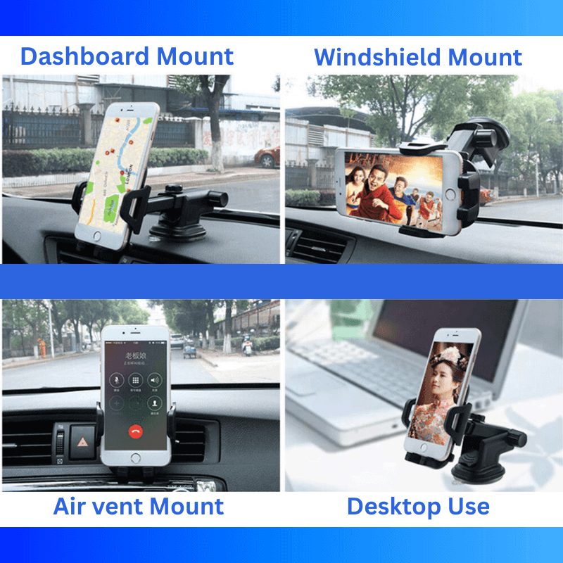 Designed for maximum flexibility, this phone holder works on dashboard, windshield, air vent, and flat surfaces, giving you safe, stable, hands-free use anywhere.
